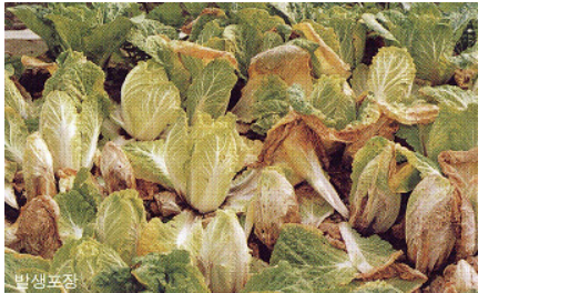 ①밭이 지나치게 건조하거나 습할 경우, 고온.저온 등으로 배추뿌리가 석회를 흡수하지 못할 때