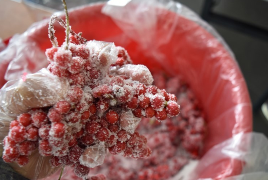 4. 오미자를 채반에 올려놓고 물기를 완전히 제거한다.