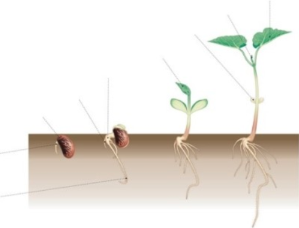 발아가 진행됨에 따라 저장양분은 감소되어 가지만, 한편 떡잎이나 초생엽 등에 엽록소가 형성되어 점차 광합성을 하게 되고 뿌리에서도 양분 ·수분을 흡수하게 되어 발아는 저장양분에 의한 종속영양 생장에서 벗어나 자력에 의한 독립영양 생장을 하게 된다.
