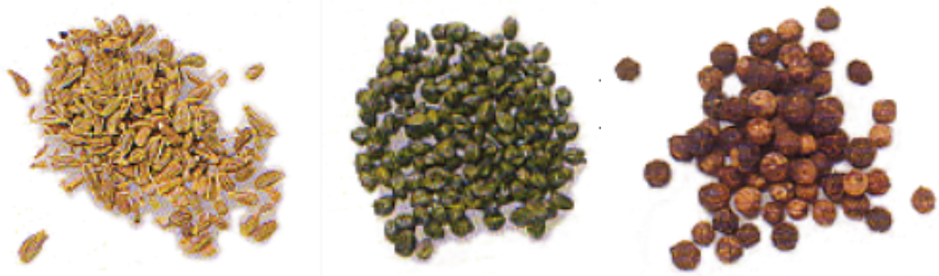 중화되어 배설물과 함께 배출되는 껍질이 단단한 미세한 씨앗류. )