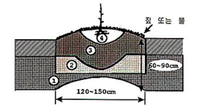 1. 전정지 + 흙 또는 모래 2. 거친퇴비 + 겉흙