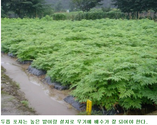 따라서 두릅나무의 재배는 햇빛이 잘 들고 배수가 잘 되는 곳을 우선적으로 택해야 한다.