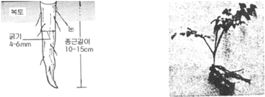 삽수크기 : 길이 15 cm정도, 굵기 0.5∼1cm이상