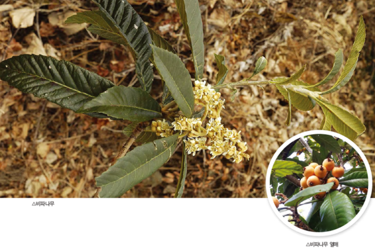 비파 잎은 연중 수확이 가능하며 9월에서 11월까지의 잎에 항암 작용과 약리작용을 하는 아미구다린과 비타민B17등이 가장 많이 함유되어 있다. 그러나 비파 잎은 상록수로 약리작용을 하는 성분을 연중 수확 채취할 수가 있다.