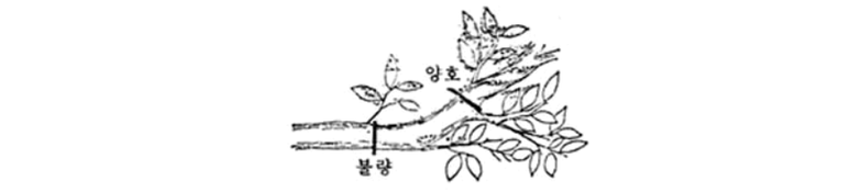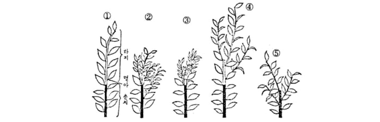 (8) 직립지(直立枝)는 나지(裸枝)가 되기 쉬우므로 엽수 확보에 힘써야 한다.