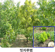전염경로 : 묘목과 매개 곤충(마름무늬매미충)에 의한 전염 등 2가지 원인 방제법 항생제 수관주사에 의한 치유법과 살충제 살포를 통한 예방법 무병 분주묘 및 대목 사용