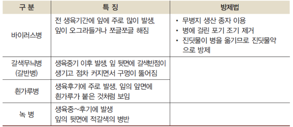 - 방제방법은 진딧물 발생초기에 방제약제를 10일 간격으로 2∼3회 엽면 살포함