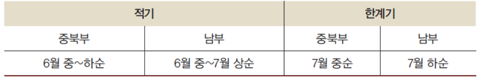 가. 파종시기(심는시기)는 평균기온 15∼16℃가 되는 시기