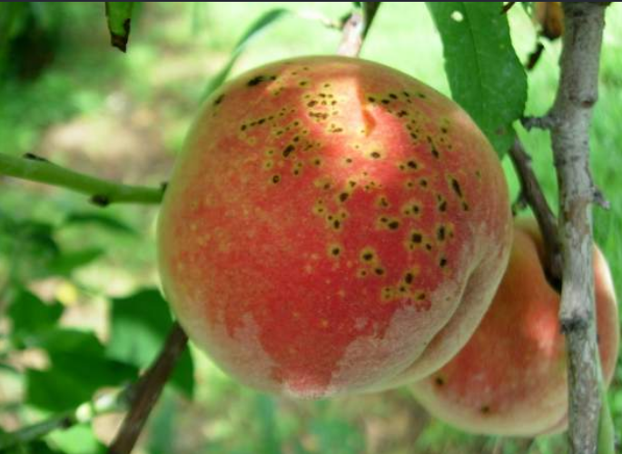 과실에 검은 반점이 생기지만 부패시키지는 않으며 과면에 흔적이 남아 상품가치를 저하시키고 조직이 경화되어 과실비대기에 부분 열과가 발생된다. 무대재배시 발생이 많고 특히 중·만생종에 피해가 많다. 전염원은 이병가지 내에서 월동하여 형성된 분생포자가 비와 바람에 의해 비산된다.