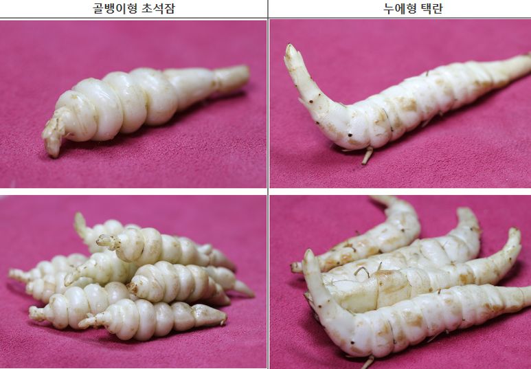 초석잠의 기원식물로는 크게 석잠풀(골뱅이형 초석잠)과 쉽사리(누에형 택란)로 분류 할 수 있습니다.