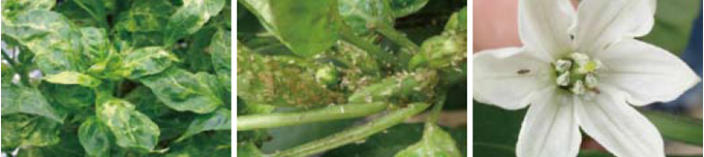 ● 진딧물이나 총채벌레는 바이러스병을 옮겨 주고, 식물체의 생육 장해의 원인이 되므로 발생 초기부터 잘 관찰하여 약제를 살포하여 방제해야 한다.