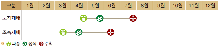 ● 유기물 시용 : 다비(多肥)에 적응성이 강하여 유기질을 충분히 시용