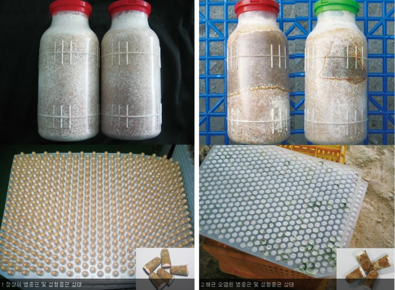 - 종균병의 뚜껑을 열었을 때 종균특유의 싱싱한 냄새가 나지 않는 것.