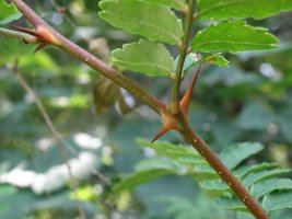 [산초나무는 가시가 어긋나거나 불규칙 하다] <초피는 가시가 마주나며, 잎 가장자리에 파도모양의 거치가 있다>