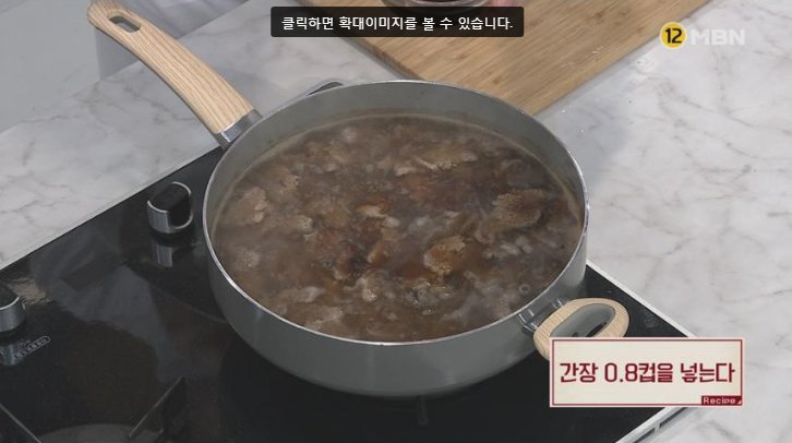 6. 간장 0.8컵을 넣는다. (나머지 간장은 나중에 기호에 따라 첨가)