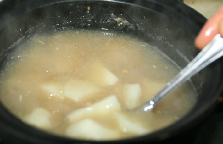 3. 쌀뜨물을 뚝배기에 자작해질 때까지 붓는다.