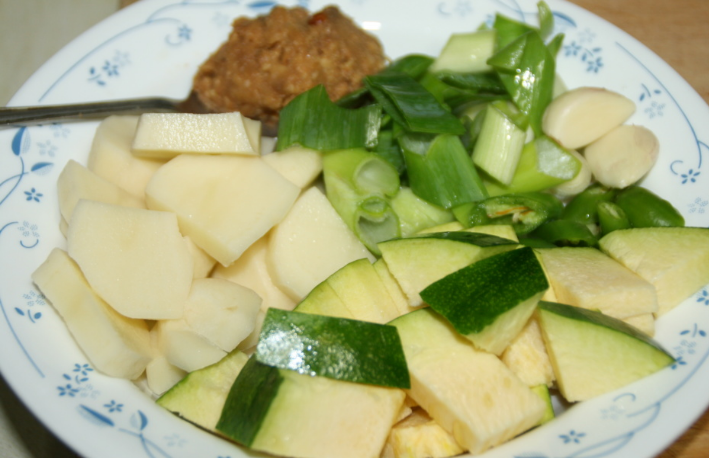 재료/감자, 호박,(각 100g)고추를 썰어 둔다. 된장 1.5큰 술