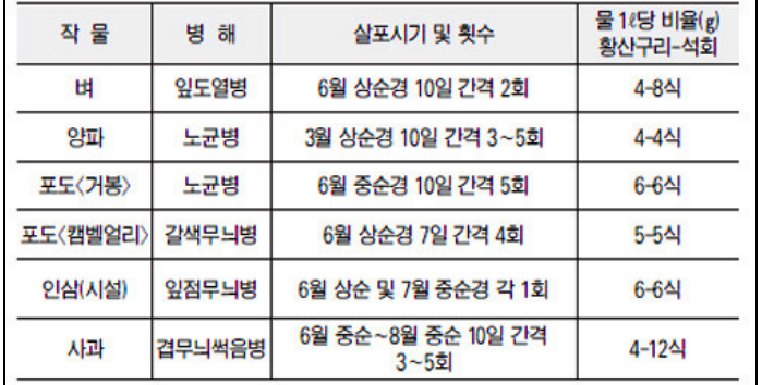 작물별 석회보르도액 살포시기