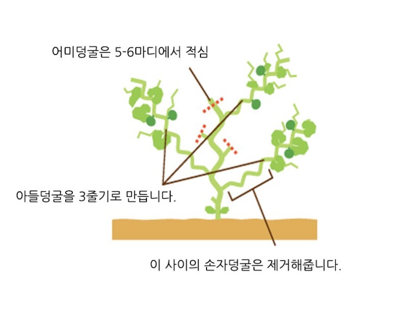 어미덩굴 적심한 밑으로 자라는 손자덩굴은 제거합니다.
