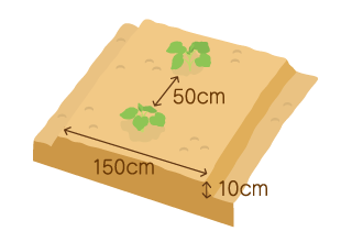 이랑폭은 150cm에 포기 간격은 50cm 정도가 보통이지만