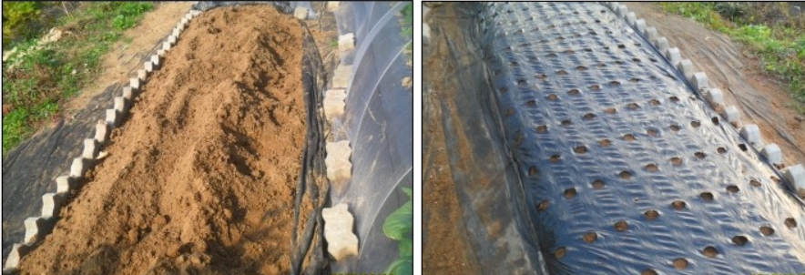 냉해를 방지하기 위해, 양파를 정식할때 비닐로 덮어 주거나