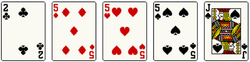9-9-9-3-3 win, 7-7-7-J-J lose
