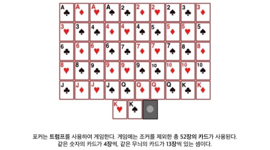 ② 같은 서열(같은 수나 같은 그림패)의 카드 4장으로 이루어지는 포커