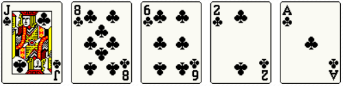 ♣Q-J-10-9-8 vs ♣6-5-4-3-2 (탑에 의해 결정)