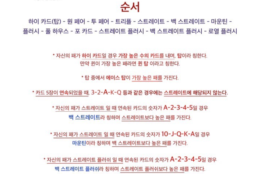 포커 족보 순서,포커 카드 순서,7포커 룰/규칙