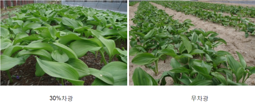 산마늘 차광 정도에 따른 생육비교