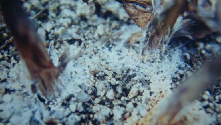 Sclerotium rolfsii라는 곰팡이에 의해 발생된다. 6-8월에 걸쳐 발생이 심하다.